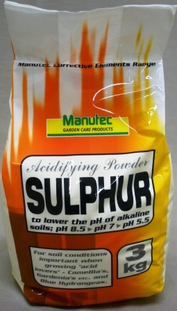 Sulphur is one of the essential elements to plants. It is necessary for the formation of Chlorophyll - the green, light absorbing pigment in plants. A sulphur deficiency results in yellowing, usually of the whole plant, small leaves with rolled down edges. Sulphur is also the most economical and effective way to lower the pH of soil. This is particularly important when growing azaleas, camellias and rhododendrons, as these plants prefer strongly acidic soils.