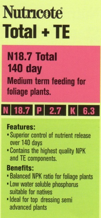 Each Nutricote prill contains a complete fertiliser and to ensure the correct level of nutrients even in very small containers, prills are also available in fine grain form, allowing even distribution in the smallest cells. Each prill has a plastic resin coating that is generally less than 6% product weight and 12% for the Micro.