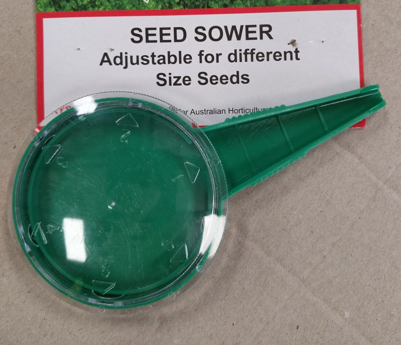 Small disc with adjustable aperture for easy sowing and distribution of small seeds.